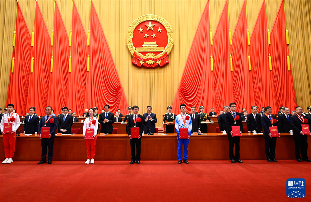 4月8日,北京冬奥会、冬残奥会总结表彰大会在北京人民大会堂隆重举行。习近平等为北京冬奥会、冬残奥会突出贡献个人和突出贡献集体代表颁奖。新华社记者 丁林 摄