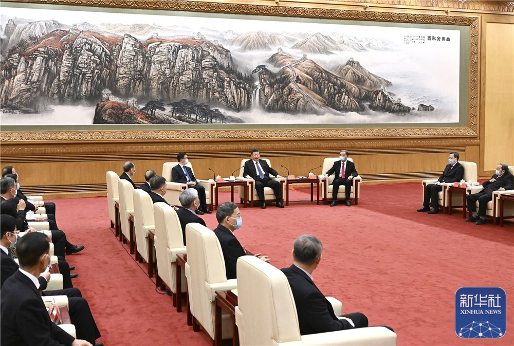 在听取丁仲礼致辞后,习近平发表了重要讲话。他强调,2021年是党和国家历史上具有里程碑意义的一年,也必将是载入史册的一年。我们办成了一系列大事要事,战胜了一系列风险挑战,推动党和国家事业取得新的重大成就。我们隆重庆祝中国共产党成立100周年,召开中共十九届六中全会、制定第三个历史决议,开展党史学习教育,如期打赢脱贫攻坚战,如期全面建成小康社会,实现第一个百年奋斗目标,开启全面建设社会主义现代化国家、向第二个百年奋斗目标进军新征程。我们从容应对百年变局和世纪疫情,完整、准确、全面贯彻新发展理念,构建新发展格局迈出新步伐,改革开放全面深化,民生保障扎实有效,生态文明建设持续推进,“十四五”实现良好开局。我们坚持人民至上、生命至上,坚持外防输入、内防反弹,坚持科学精准、动态清零,慎终如始抓好新冠肺炎疫情常态化防控,积极开展抗疫国际合作,经济发展和疫情防控保持全球领先地位。我们统筹发展和安全,注重防范化解各方面风险,规范社会主义市场经济秩序,弘扬社会主义核心价值观,营造积极健康、充满活力的发展环境。这些成绩的取得,是中共中央坚强领导的结果,也是包括各民主党派、工商联和无党派人士在内的统一战线广大成员同心奋斗的结果。实践证明,大家不愧是中国共产党的好参谋、好帮手、好同事。在此,我代表中共中央向大家表示衷心的感谢!
