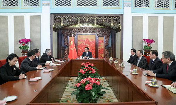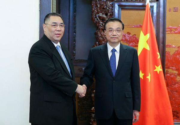 国务院总理李克强12月15日上午在中南海紫光阁会见来京述职的澳门特别行政区行政长官崔世安,听取澳门当前形势和特区政府工作情况的汇报。