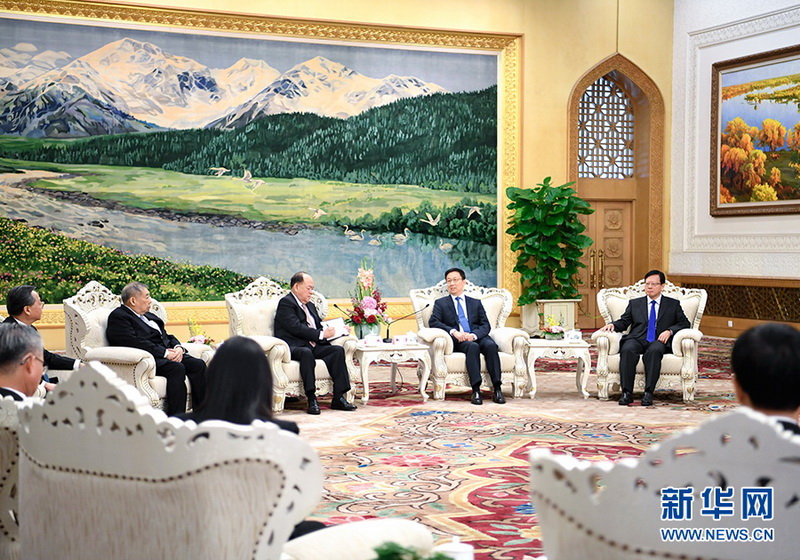 10月10日,中共中央政治局常委、国务院副总理韩正在北京人民大会堂会见由贺一诚主席率领的澳门特别行政区立法会参访团。 新华社记者 燕雁 摄