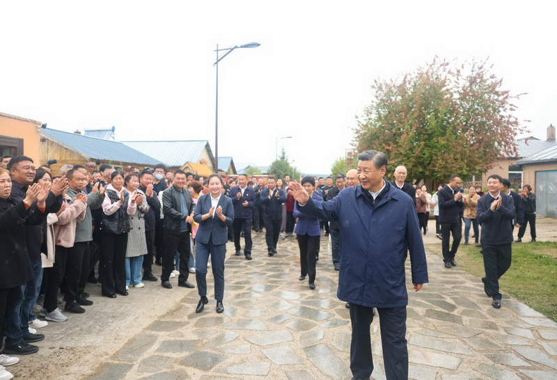 9月6日至8日,中共中央总书记、国家主席、中央军委主席习近平在黑龙江考察。这是6日下午,习近平在大兴安岭地区漠河市北极村考察时,同当地群众亲切交流。新华社记者 鞠鹏 摄